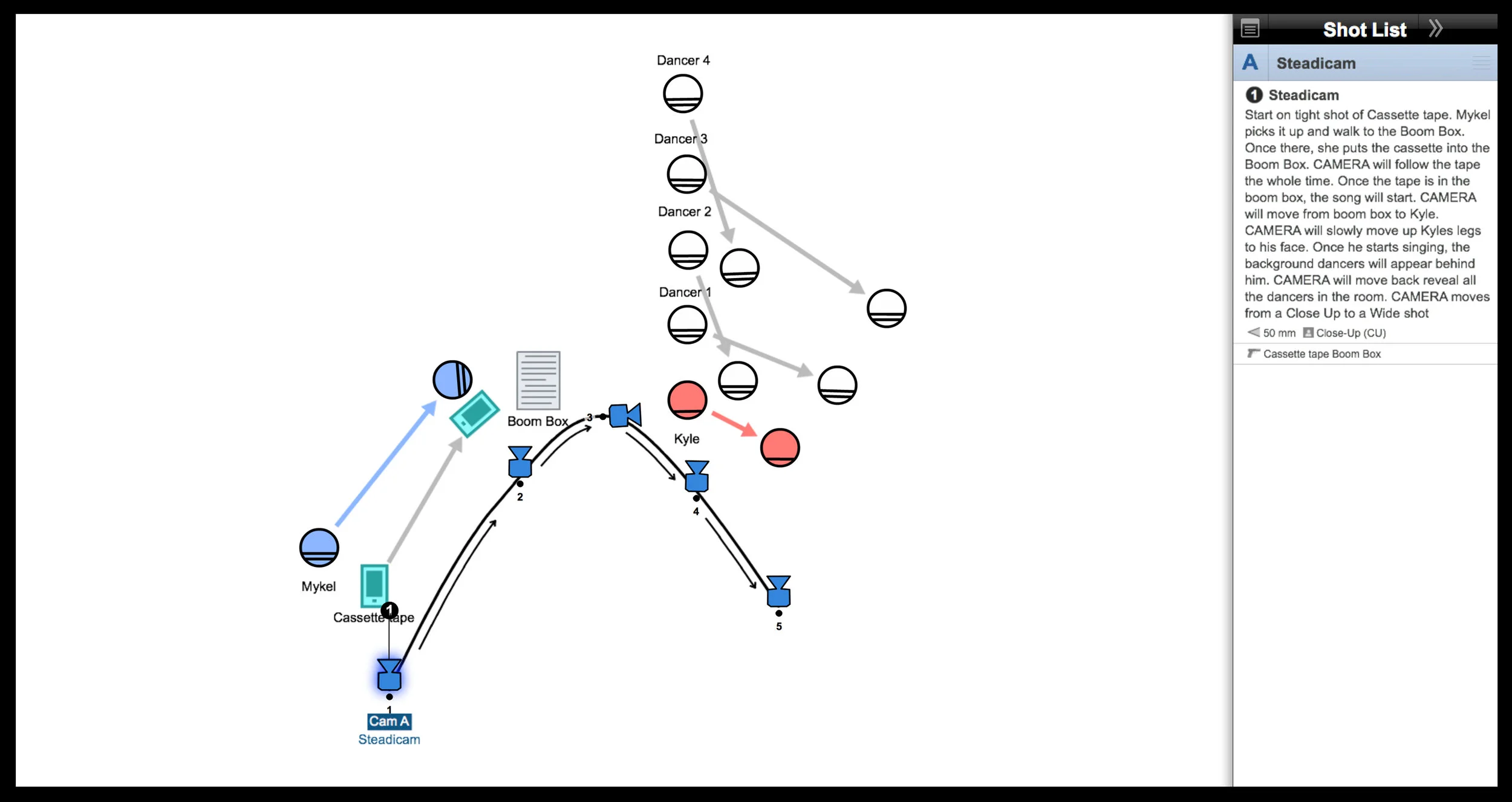 For “I’m in Love” I wanted to open the music video with a nice one shot. In the first two storyboards below, I worked out the steps and dance routine with the Talent and Dancers to coordinate the action and movements.